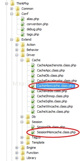 下载缓存的Memcache处理类,放到ThinkphpExtendDriverCache目录中;下载Session的Memcache处理类,放到ThinkphpExtendDriverSession目录中,如下图所示: