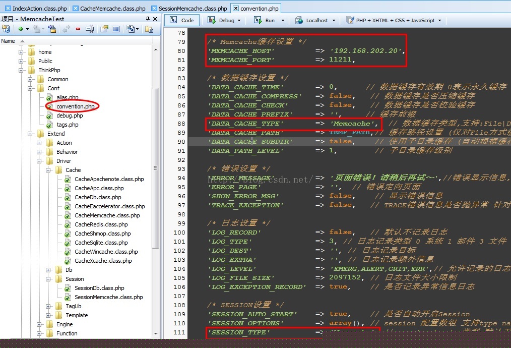 修改配置文件,调整Session与缓存,都记录到Memcache服务器上。打开ThinkPHPConfconvention.php,增加配置项: